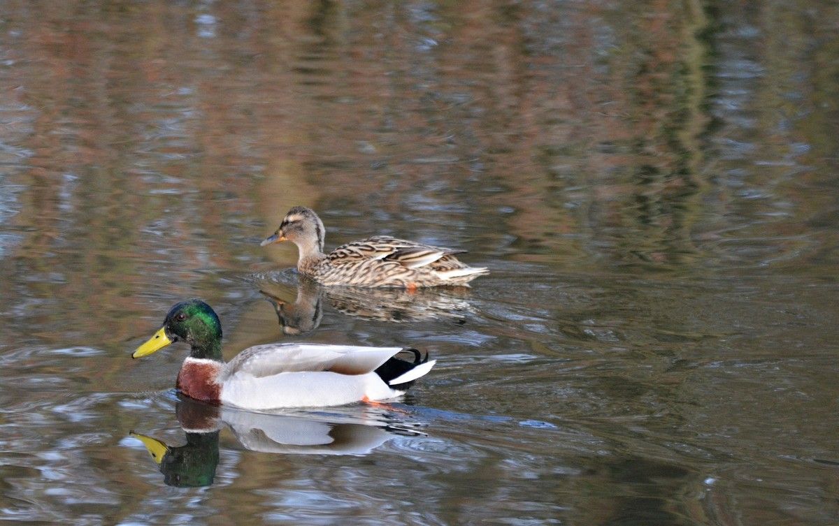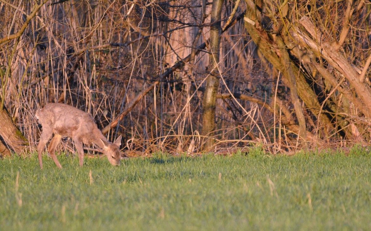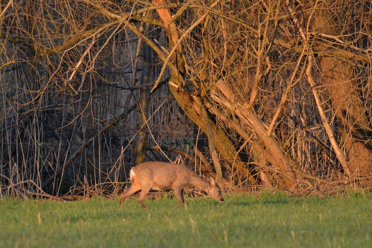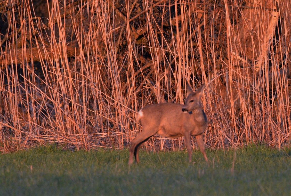 Entre un lever du jour qui éclaire favorablement quelques colverts, des rayons qui brille largement sur un héron qui se promène tranquillement et une chevrette pleine qui profite en du soleil couchant pour sortir d'un bosquet pour s'alimenter, c'est que du bonheur.